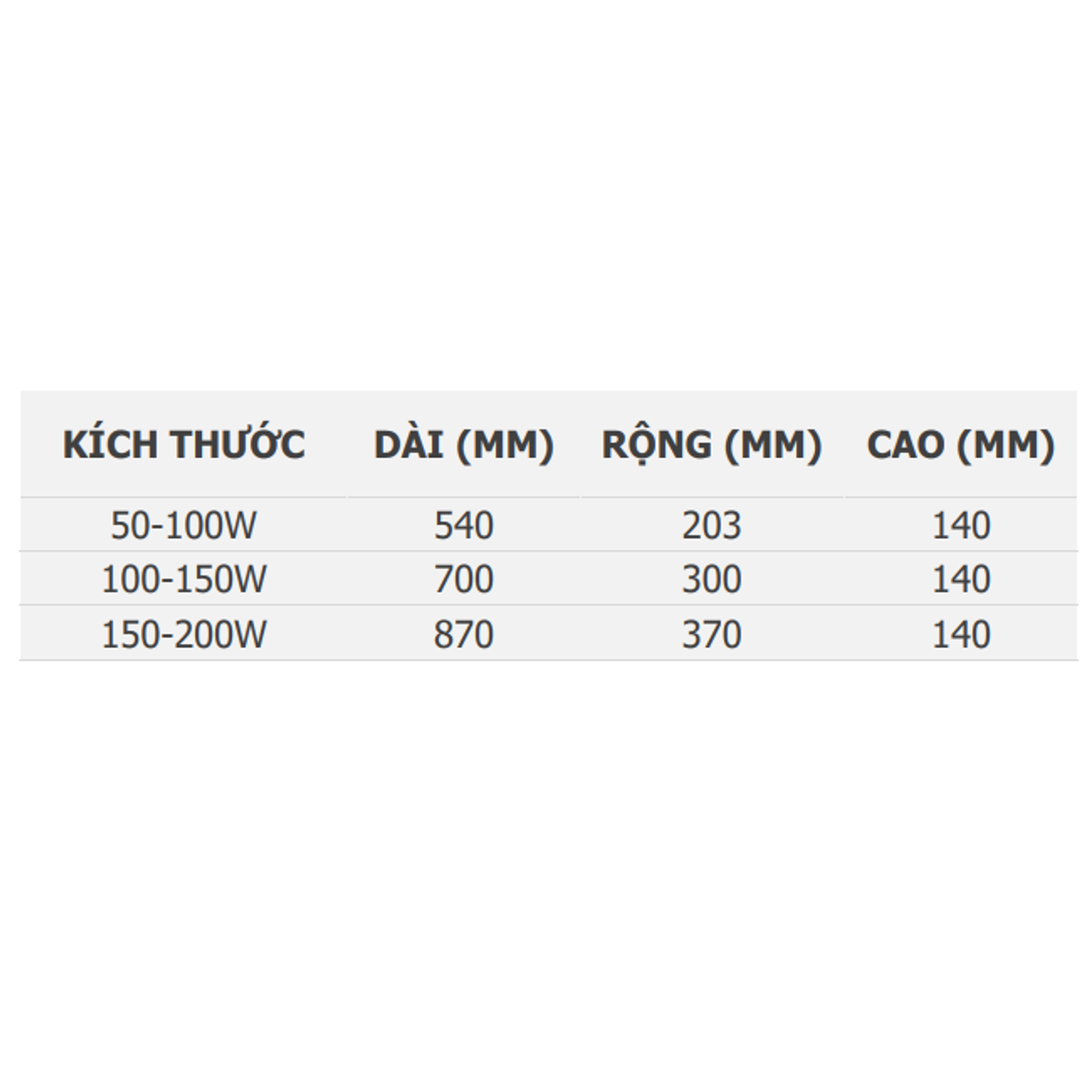 | Công suất | 30W – 250W |